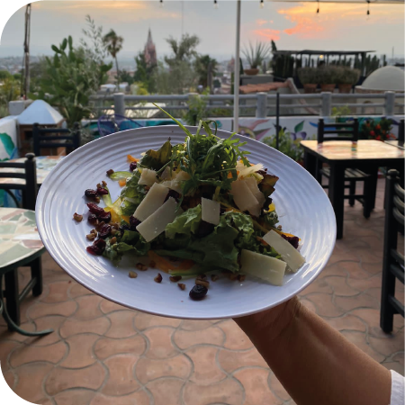 Salsa de la casa, crema, queso, cebolla y cilantro